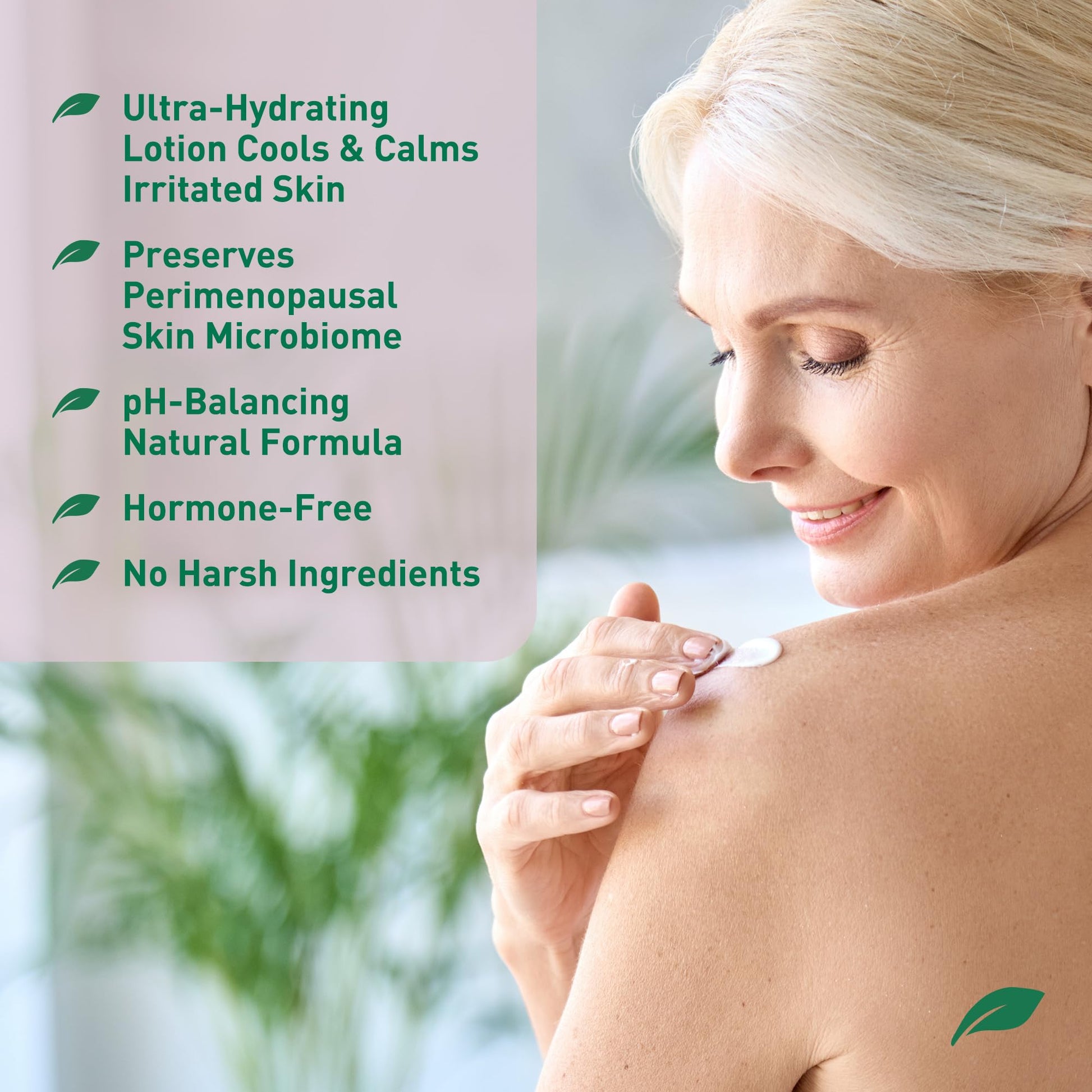 - This moisturizing body lotion is designed for dry, reactive skin and helps relieve discomfort associated with hormonal changes. Formulated without artificial fragrances, it instantly cools and calms your skin.