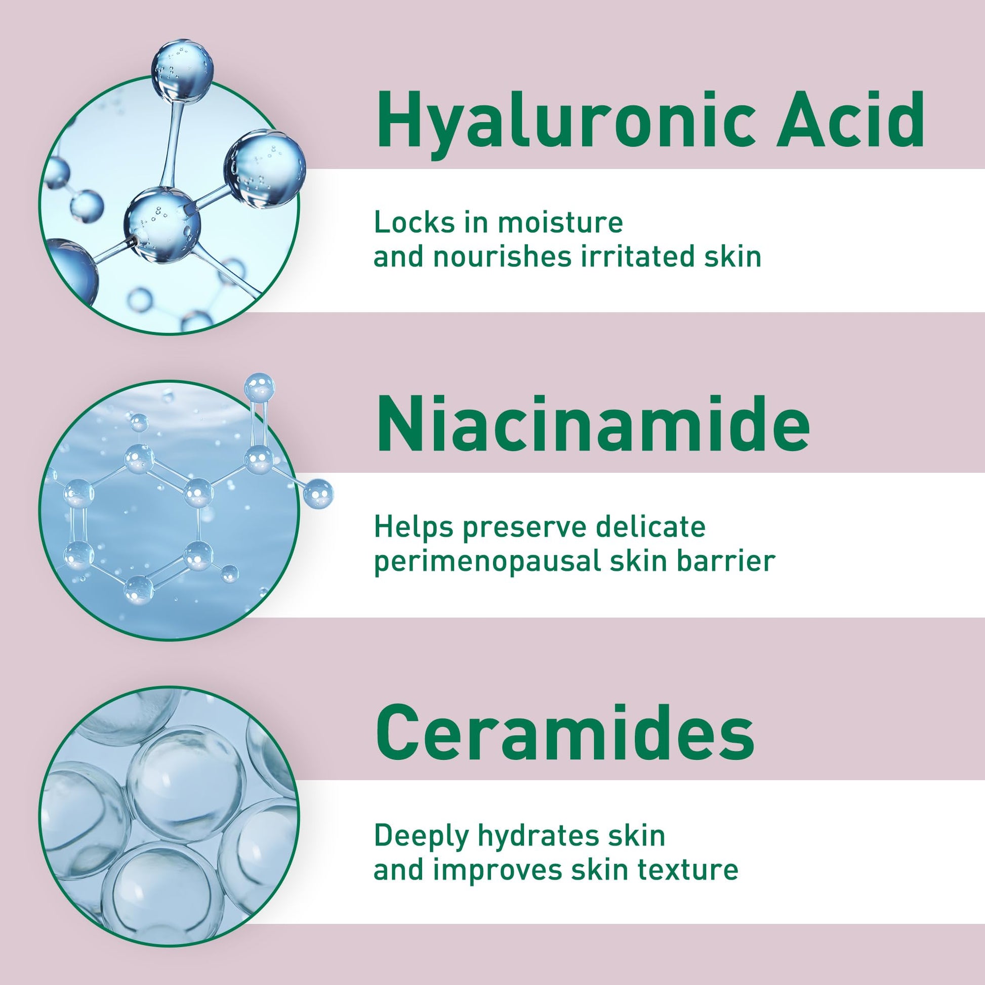 Our Perimenopause pH-Balancing Lotion is an unscented Body Lotion for dry, itchy skin with aloe vera, ceramides & hyaluronic acid to support skin microbiome & barrier function.